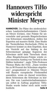 HAZ TITELSEITE 23.12.2014 HANNOVERS TIHO WIDERSPRIHT MINISTER MEYER