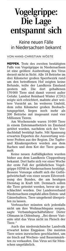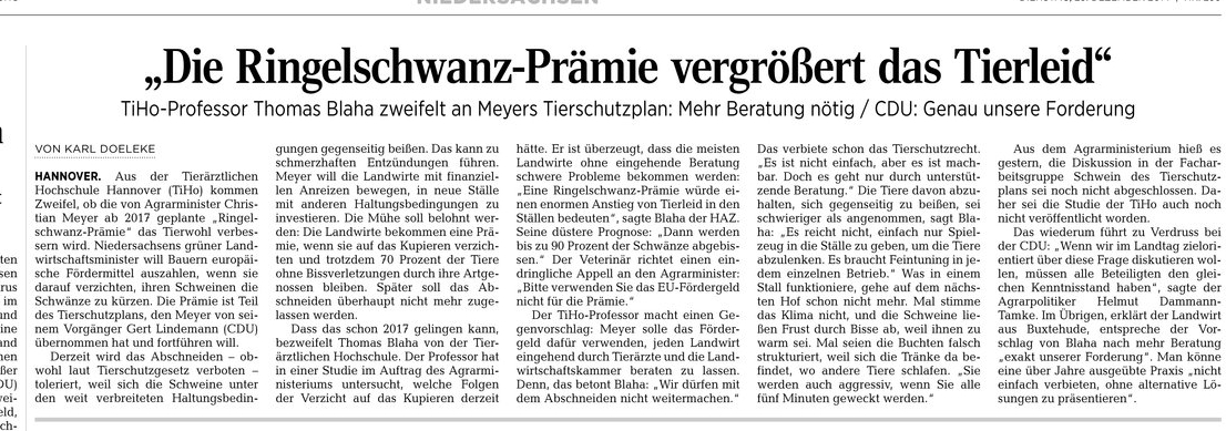 HAZ TITELSEITE 23.12.2014 HANNOVERS TIHO WIDERSPRIHT MINISTER MEYER