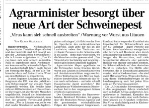 HAZ TITELSEITE 03.02.2014 AGRARMINISTER BESORGT ÜBER NEUE ART DER SCHWEINEPEST
