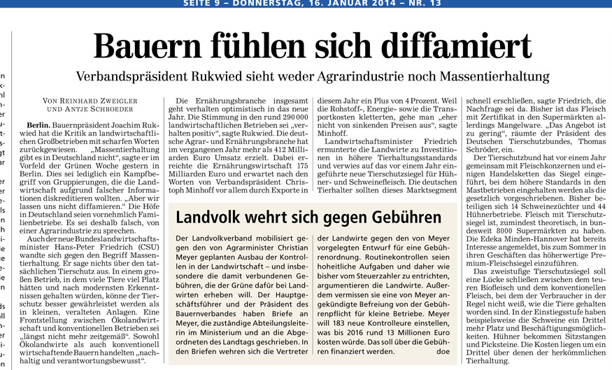 HAZ 16.01.2014 BAUERN FÜHLEN SICH DIFFAMIERT