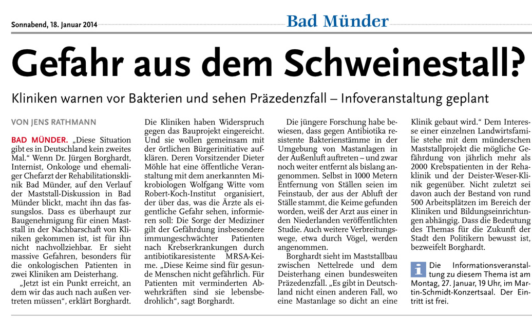 HAZ LN 18.01.2014 GEFAHR AUS DEM SCHWEINESTALL?