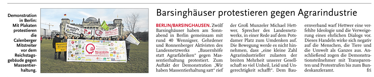 HAZ CZ BARSINGHÄUSER DEMONSTRIEREN GEGEN AGRARINDUSTRIE