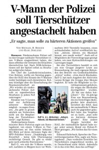 HAZ TITELSEITE 27.01.2014 V-MANN DER POLIZEI SOLL TIERSCHÜTZER ANGESTACHELT HABEN