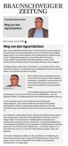 140707 BRAUNSCHWEIGER ZEITUNG 07.07.2014 GASTKOMMENTAR MICHAEL HETTWER WEG VON DEN AGRARFABRIKEN