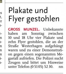 HAZ CZ 03.06.2014 PLAKATE UND FLYER GESTOHLEN