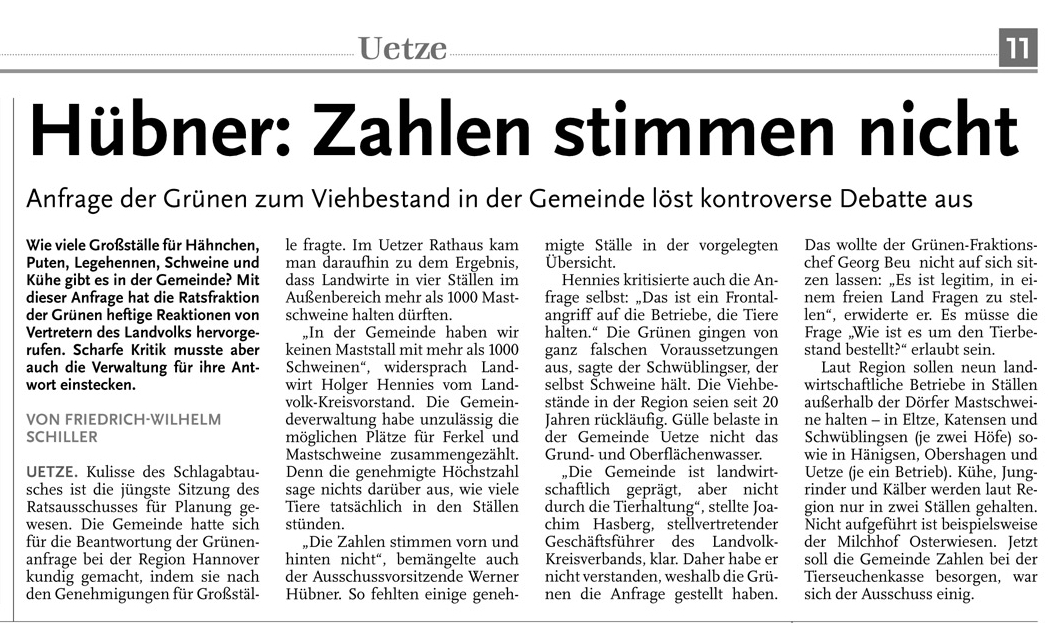 HAZ AB 14.03.2014 HÜBNER: ZAHLEN STIMMEN NICHT