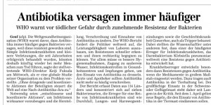 HAZ 02.05.2014 ANTIBIOTIKA VERSAGEN IMMER HÄUFIGER