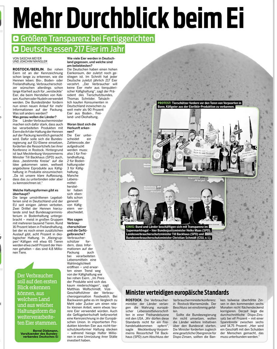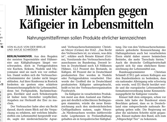 HAZ TITELSEITE 17.05.2014 MINISTER KÄFIGEIER IN LEBENSMITTELN