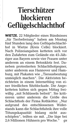 HAZ 20.05.2014 TIERSCHÜTZER BLOCKIEREN GEFLÜGELSCHLCHTHOF