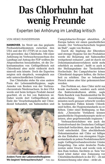 HAZ 06.11.2014 DAS CHLORHUHN HAT WENIGE FREUNDE