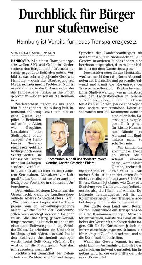 HAZ 17.11.2014 DURCHBLICK FÜR BÜRGER NUR STUFENWEISE