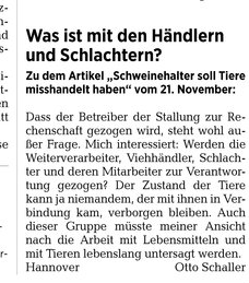 HAZ 27.11.2014 LESERBRIEF OTTO SCHALLER, HANNOVER