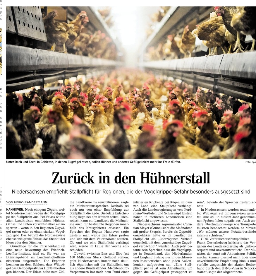 HAZ 27.11.2014 ZURÜCK IN DEN HÜHNERSTALL