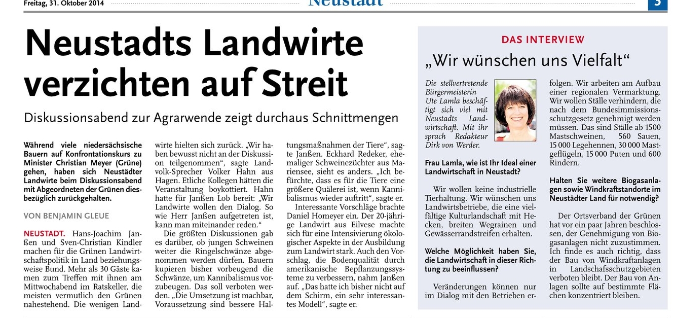 - Dialogreihe „Politik für Land und Leute“ im Kino im Künstlerhaus in Hannover, Dokumentarfilm „Agrokalypse“ und Podiumsdiskussion mit Agrarminister und Regisseur